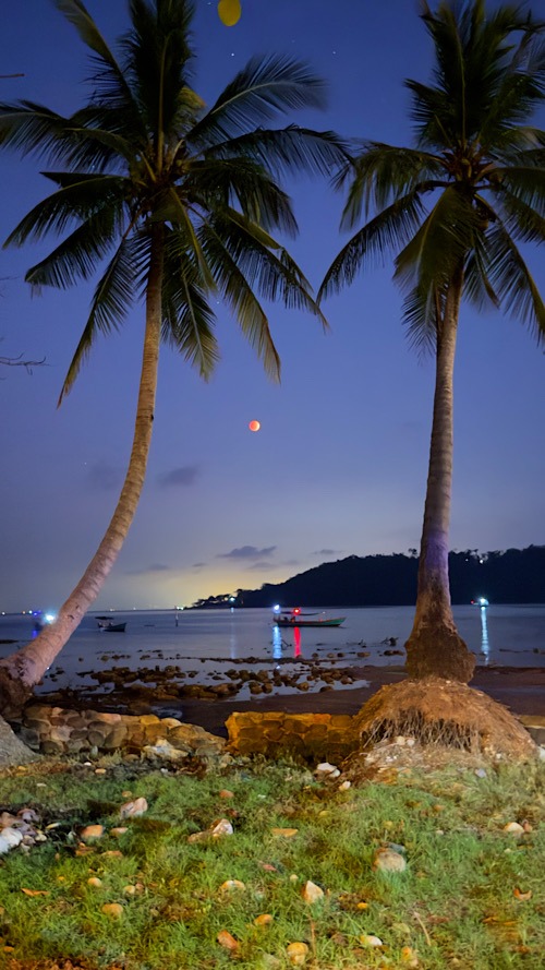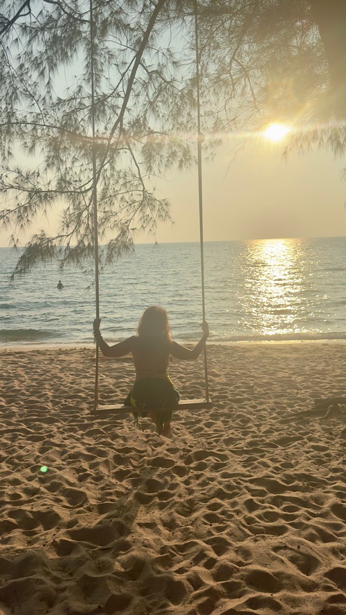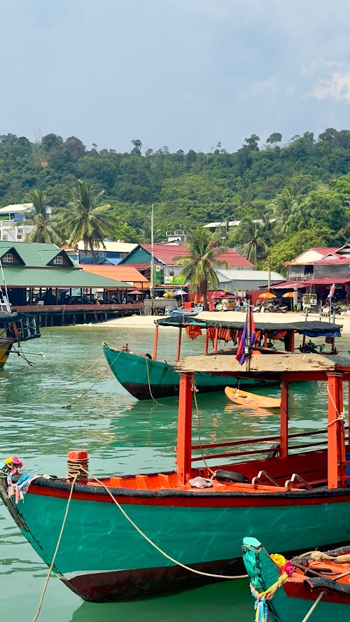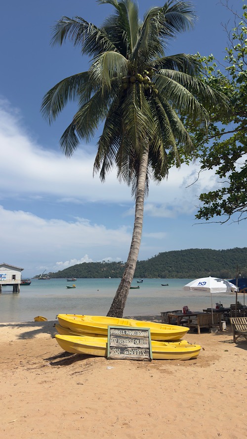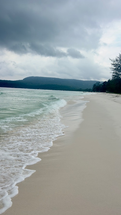 02/03/26 au 09/03/26 : On a longuement hésité entre Koh rong et sa petite sœur Koh Rong Saloem. Notre choix c’est finalement porté sur la plus petite des deux îles, encore préservée et très sauvage. Il n’existe pas de réseau routier. Les différentes baies sont desservies par des taxis boats. On a posé nos sacs à dos à M’Pai bay pour quatre nuits. Réputée pour sa tranquillité et son ambiance Chill. Le petit village de M’pai bay nous a semblé un très bon choix. Notre bungalow entre mer et jungle avec petite terrasse privée, nous convient parfaitement. Les journées filent comme l’éclair entre snorckeling, balades et bonne bouffe. On s’y sent tellement bien sur ce petit coin de paradis qu’on prolonge de 3 jours, au total, on restera une semaine !!! on se laisse facilement glisser dans ce rythme insulaire, il n’y a pas grand chose à faire mais tout prend du sens. On s’émerveille pour un rien, les contraintes de la vie ont complètement disparu, tout coule de source… Malheureusement toute bonne chose a une fin. Les Chinois ne sont jamais très loin, avides d’accéder à des concessions, les constructions et resort vont bientôt fleurir sur l’île. Pour combien de temps cet endroit restera-t-il un petit paradis ? Si on veut encore profiter de la quiétude des lieux, il ne faut pas traîner…Les choses ne resteront pas longtemps en état.